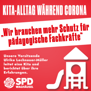 Die Erzieher*innen arbeiten zwangsläufig oft ungeschützt und somit in ständiger Sorge vor einer Infektion. In den Kitaräumen Abstand zu halten und Maske zu tragen ist meist nicht möglich. Masken in den Kitas entspricht keiner responsiven Pädagogik und kann allenfalls kurzeitig in Betracht gezogen werden. Kitakinder brauchen eine klar erkennbare Mimik und eine klare Ansprache, um die Reaktion ihres Gegenübers einschätzen zu können.