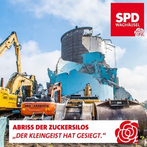 Die Silos der Firma Südzucker standen wie kaum ein zweites Bauwerk in Waghäusel für die wirtschafts- und kulturgeschichtliche Vergangenheit unserer Stadt. Auf diese Vergangenheit sind wir stolz, denn die Südzucker-Produktion prägt unsere Stadt und unser Landschaftsbild bis heute. So ist z.B. auch das Naturschutzgebiet im Bruch mit seiner Artenvielfalt das Ergebnis unserer Wirtschaftsgeschichte. Als SPD haben wir uns dafür eingesetzt, die Zeugnisse unserer Vergangenheit zu erhalten und für die Zukunft nutzbar machen. Im Zuge einer Umgestaltung des Gebiets um die Silos zum Wohn- und Gewerbegebiet hätten sich mit innovativen architektonischen Konzepten die beiden Türme beispielsweise in eine Wohnlandschaft integrieren lassen können.