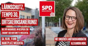 Aber was muss sich konkret ändern, um Waghäusels Ortsmitten ansehnlicher, anwohner- und fahrradfreundlicher zu machen? Am Samstag, den 19.09. möchten wir und unsere Landtagskandidatin Alexandra Nohl dazu mit den Bürgerinnen und Bürgern in Wiesental ins Gespräch kommen. Wir treffen uns um 11 Uhr am Marktplatz Wiesental und laden Sie dazu herzlich ein, uns Ihre Ideen und Wünsche mitzugeben!