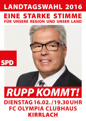 Dienstag, 16. Februar, 19:30 Uhr: Veranstaltung mit Landtagskandidat Markus Rupp, FC Olympia Kirrlach