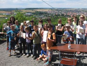Im Rahmen des Ferienprogramms machten wir am vergangenen Samstag einen Ausflug zur Burg Ravensburg, um dort den Schatz des Raban zu suchen. Der Tag begann morgens um 10 Uhr am Rathaus in Waghäusel. Nach der kurzweiligen Busfahrt nach Sulzfeld, auf der sich die 18 Ferienprogramm-Teilnehmer schon etwas kennenlernen konnten, starteten wir mit einer spannenden Führung durch den Burgfried. Auf den Spuren des Raubritters Raban von Ravensburg wandelnd, lernten wir die Geschichte der Burg von der Gründung der Wehranlage im 13. Jahrhundert bis zur heutigen Nutzung kennen. Da die kleinen Schatzsucher beim Rundgang sehr aufmerksam zugehört hatten, konnten sie mit etwas Geschick und viel Spürsinn das Rätsel lösen und den Goldschatz des Raban von Ravensburg schließlich finden. Nach einer kurzen Stärkung mit Getränken und Brezeln fand der Ausflug mit einer Weinbergerkundung einen gelungenen Abschluss. Die Exkursion endete planmäßig um 15 Uhr. Dank der interessanten Burgführung durch Lennart Schönemann und der hervorragenden Mitarbeit der jungen Teilnehmer konnten wir alle einen tollen Ferienprogramm-Ausflug genießen.