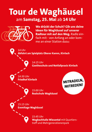Wo drückt der Schuh? Gib uns deine Ideen für Waghäusel auf unserer Radtour mit auf den Weg! Radle einfach mit von Anfang an mit oder komme an einer Station dazu: Am Samstag, den 25. Mai ab 14 Uhr