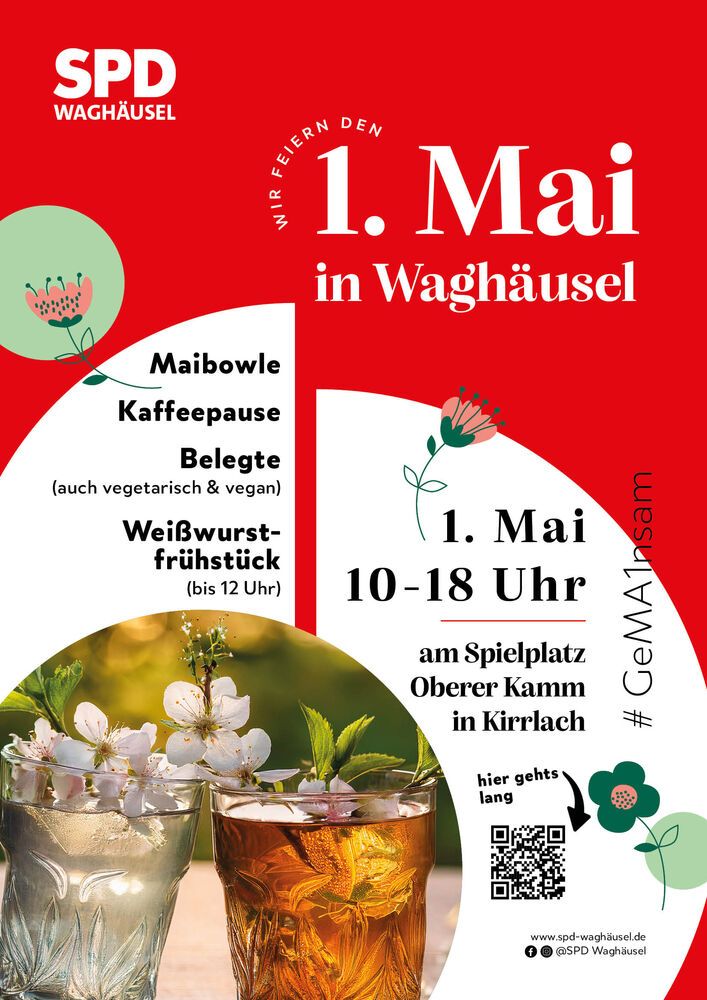 Endlich wieder! Wir feiern den Tag der Arbeit mit unserem traditionellen Maifest. Diesmal laden wir an die Dorfmitte „Oberer Kamm“ in Kirrlach, Webeschreibung siehe unten) statt. Mit dem Maifest begrüßen wir nicht nur den Frühling, sondern erinnern daran, wie wichtig Solidarität gerade heute ist.